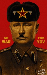 Così, l’artista LBS (Bruno Salvatore Latella) con l’opera “Vladolf Stalputin”, che rappresenta in chiave figurativa e simbolica l’incertezza geopolitica e ideologica in atto, “si affida – si legge nella presentazione dell’opera – alla figura trasfigurata del Presidente Russo Vladimir Putin, il quale vorrebbe la rinascita dell’URSS, attraverso un lavoro di “denazificazione” dell’Ucraina, e non solo. Ma sotto quali pretese ideologiche farebbe ciò? Spacciare un’azione politica e militare, con scopo prettamente imperialista e forse pure capitalistico, come un intervento pacifista e non sanguinoso è tutt’altro che ideologicamente comunista. Si cela forse la nascita di un nazimperialismo?! Vedremo, ma sappiamo che storicamente gli atti estremi portano a conseguenze estreme”. Con questa opera, LBS, che si ispira all’artivismo, rivolge un appello agli artisti visivi, affinché possano creare lavori provocatori e di denuncia sociale, al fine di promuovere una nuova corrente che operi in completa adesione con la teoria artivista.