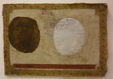 Altra scritta simbolo è "Io Mento". Nelle tre opere in mostra, di grande formato, la scritta nera su fondo bianco mosso da incostanti pennellate oltre le quali si scorgono fisionomie